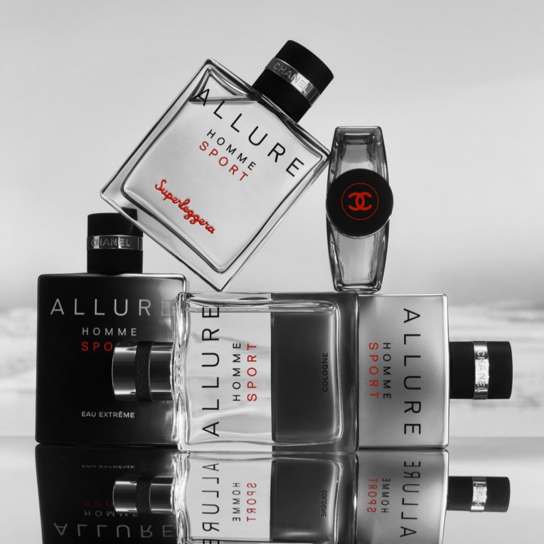 Compatto, preciso e dalle linee affusolate, il flacone emblematico di ALLURE HOMME SPORT è rielaborato in vetro fumé trasparente. Simbolo di eccellenza ed esclusività, la firma emblematica “Superleggera” è incisa in rosso sul flacone. Un dettaglio che ne esalta l’allure sportiva.