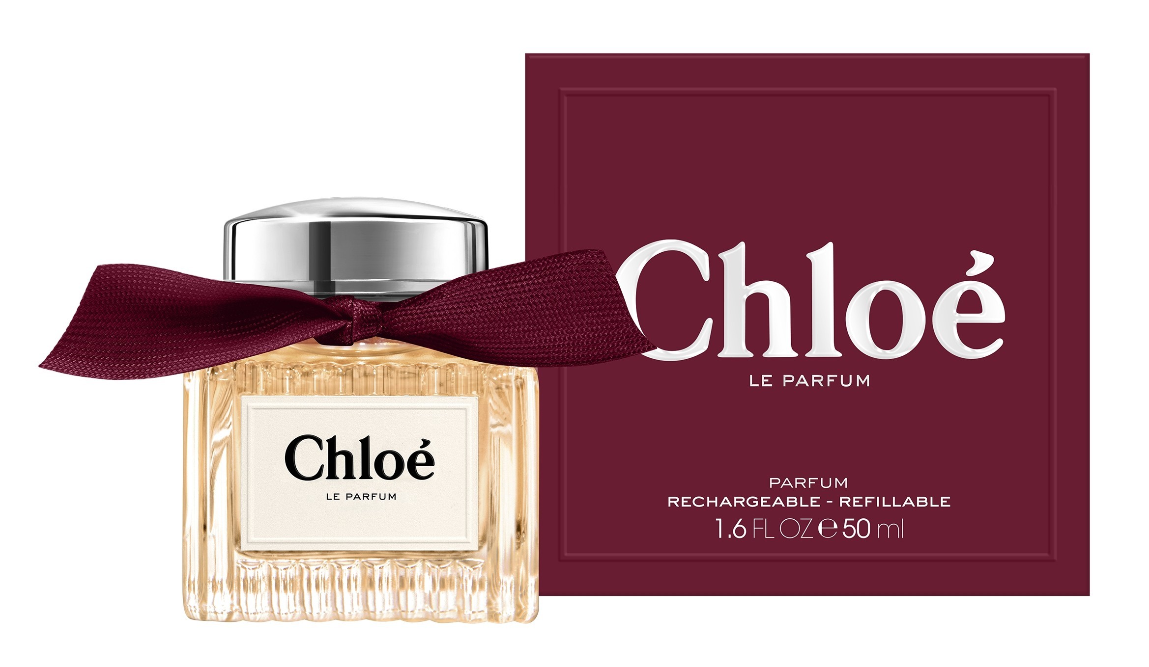 CHLOÉ Le Parfum incarna la donna CHLOÉ istintiva e autentica . Innegabilmente femminile e unico, il flacone della fragranza è realizzato nell'iconico vetro plissettato e chiuso da un nastro bordeaux.