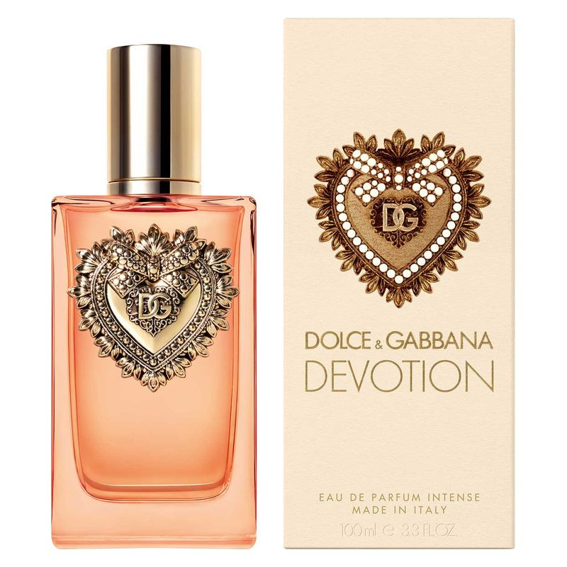 Dolce&Gabbana Devotion Eau de Parfum Intese, nuovo capitolo della storia olfattiva Dolce&Gabbana Devotion, omaggia l`incensante dedizione del brand allo stile, all`artigianalità e al design Made in Italy. Dolce&Gabbana Devotion Eau de Parfum Intense è racchiusa in una sofisticata bottiglia di vetro color ambra, elegantemente decorata dall`inconfondibile Cuore Sacro. Il profumo si apre con le note distintive e confortevoli della Nocciola. Nel cuore esplode la freschezza e la luminosità dei Fiori d`Arancio. Il tocco caldo e sensuale della Vaniglia trasporta l`olfatto verso una destinazione dolce e sofisticata.
