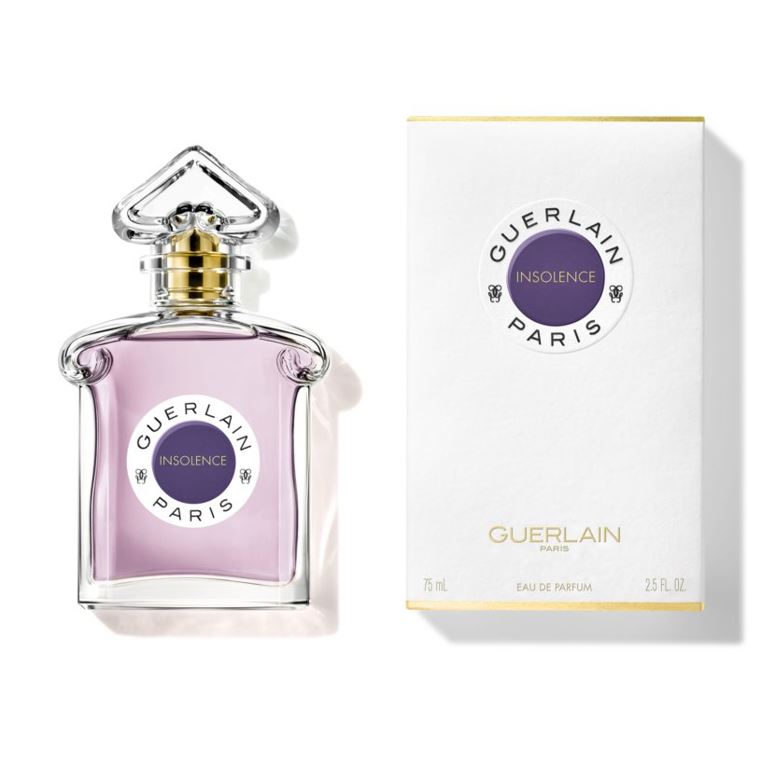 L`Eau de Parfum Insolence mette in evidenza la violetta porta in scena una violetta eccessiva, agli antipodi del luogo nascosto timido mormorio in cui cresce questo fiore, nella penombra e in controluce. Ad accompagnare l`audacia della violetta, la femminilità elegante e senza tempo dell`iris. Insolence segna inoltre il debutto dei frutti rossi in una creazione Guerlain.