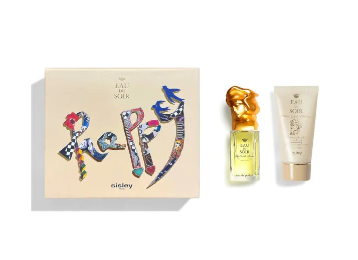 Decorato con le illustrazioni dell'artista britannica Fee Greening l'ultimissimo cofanetto regalo Eau du Soir in edizione limitata ricorda, con i suoi disegni di stelle scintillanti e nuvole bianche, una passeggiata al tramonto lungo i giardini dell'Alcazar a Siviglia. Rende omaggio all'iconica Eau de Parfum di Sisley, che coniuga la freschezza degli agrumi alla sensualità dei fiori, sublimata da un'elegante firma chypre.