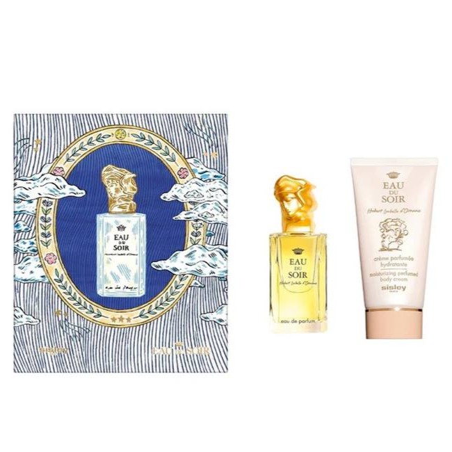 Il cofanetto regalo contiene Eau du soir 100 ml e La Crème Parfumée Eau du Soir 150 ml.